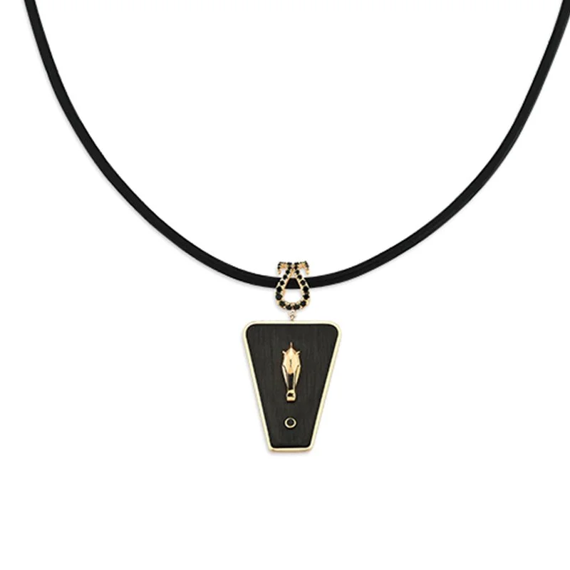Shabdiz Horse Leather Black Diamond Gold Necklace